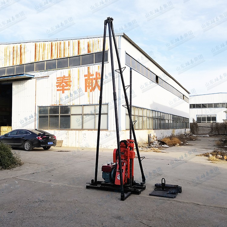 山東雄泰機(jī)械集團(tuán)生產(chǎn)的小型液壓鉆機(jī)系列產(chǎn)品是一種具有油壓給進(jìn)的高中低速鉆機(jī)。與其他同類產(chǎn)品比較,具有重量輕便,結(jié)構(gòu)簡單,鉆進(jìn)速度快,取芯樣品口徑大等優(yōu)點(diǎn),是目前國內(nèi)常用的輕便液壓鉆機(jī)。特別適用于山地,丘陵,河道等特殊困難地形的取芯作業(yè)工程以及搬家,鉆孔等基礎(chǔ)工作的需求。鉆探可達(dá)70米深,。整機(jī)重量僅為290KG(包含發(fā)動機(jī)),并且可以較方便的拆解為3大部分,方便運(yùn)輸以及組裝拆解。本鉆機(jī)成孔口徑為75MM~108MM,口徑范圍基本滿足各種地勘取樣工作的需求。本鉆機(jī)標(biāo)準(zhǔn)配置8馬力柴油機(jī)為動力,為使本機(jī)的適用性更廣泛,滿足不同用戶的需求,配備柴油機(jī)動力,電機(jī)動力兩種不同的動力,希望本設(shè)備能成為您工作的好幫手。